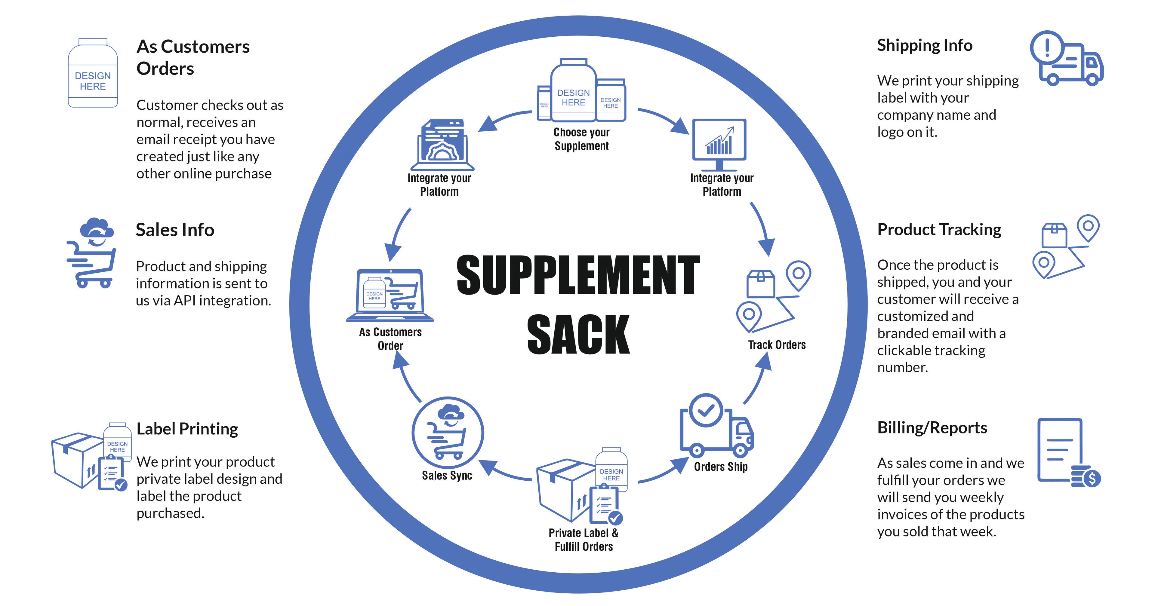 Connect Your PlatformOnce you have your private label supplement chosen start listing and selling. Simply connect your shopping cart to our inventory management and shipping software.