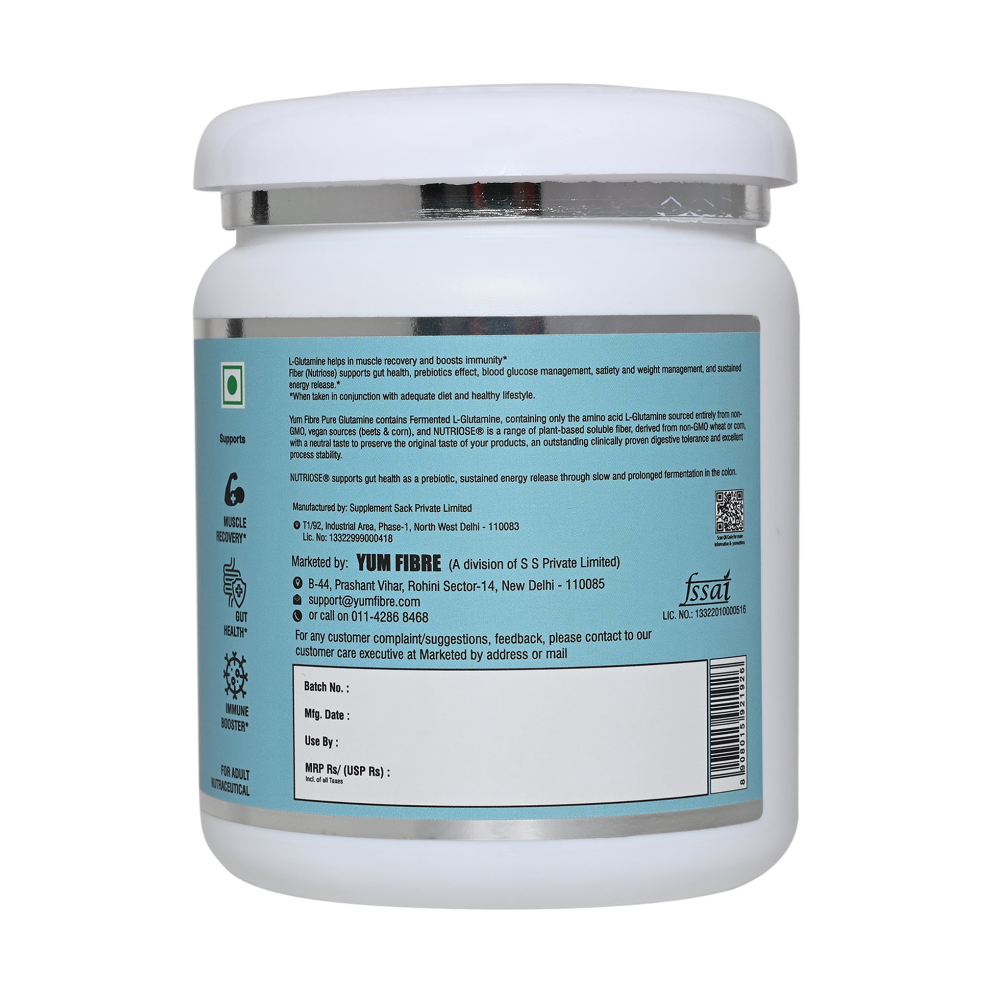 Our Fiber Glutamine is a premium, plant-based amino acid supplement designed to support muscle recovery, gut health, and immune function. Made through a natural fermentation process, it provides a clean, highly bioavailable form of L-Glutamine without synthetic additives.